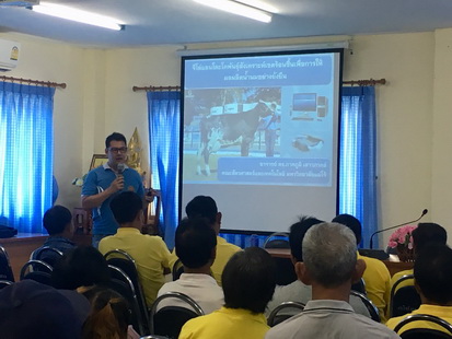 วันที่ 25 พฤษภาคม 2562 อาจารย์ ดร.ภาคภูมิ เสาวภาคย์ อาจารย์ประจำคณะสัตวศาสตร์ฯ ร่วมเป็นวิทยากรบรรยายพิเศษในหัวข้อ “จีโล่แลนโดะโคพันธุ์สังเคราะห์เขตร้อนชื้นเพื่อการให้ผลผลิตน้ำนมอย่างยั่งยืน” และ รศ.ดร.วิศิษฐิพร สุขสมบัติ ผู้เชี่ยวชาญโภชนศาสตร์สัตว์เคี้ยวเอื้อง เทคโนธาน มหาวิทยาลัยเทคโนโลยีสุรนารี บรรยายพิเศษในหัวข้อ “การแก้ไขปัญหาจำนวนโซมาติกส์เซลล์ในน้ำนมโคโดยใช้ยีสต์” ให้กับเกษตรกรผู้เลี้ยงโคนมสมาชิกสหกรณ์โคนมในเขตภาคเหนือ อาทิ สกค. สันกำแพง ป่าตึง-ห้วยหม้อ, แม่ออน, ผาตั้ง, แม่วาง, ลำพูน, เชียงใหม่ ณ ห้องประชุม สกค. สันกำแพง ป่าตึง-ห้วยหม้อ จำกัด จังหวัดเชียงใหม่ |